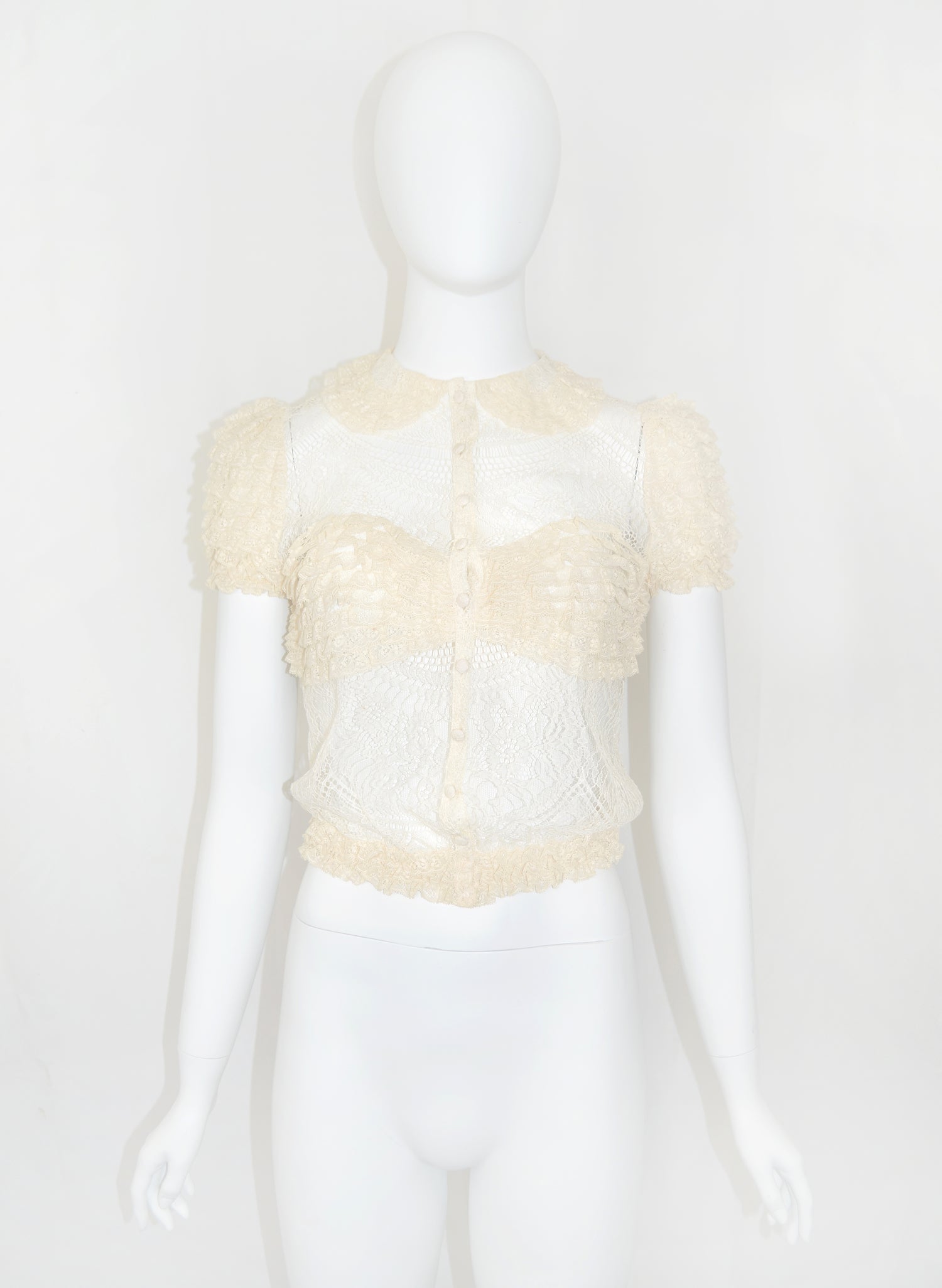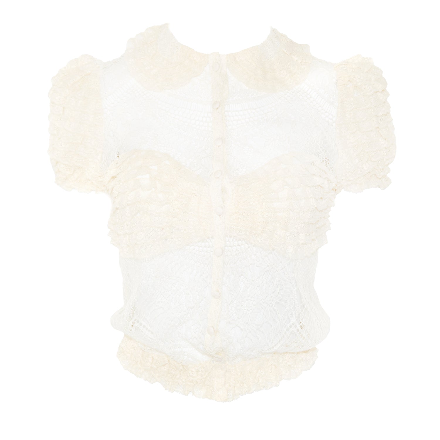 BLUMARINE Lace Sheer Blouse w Puff Sleeves