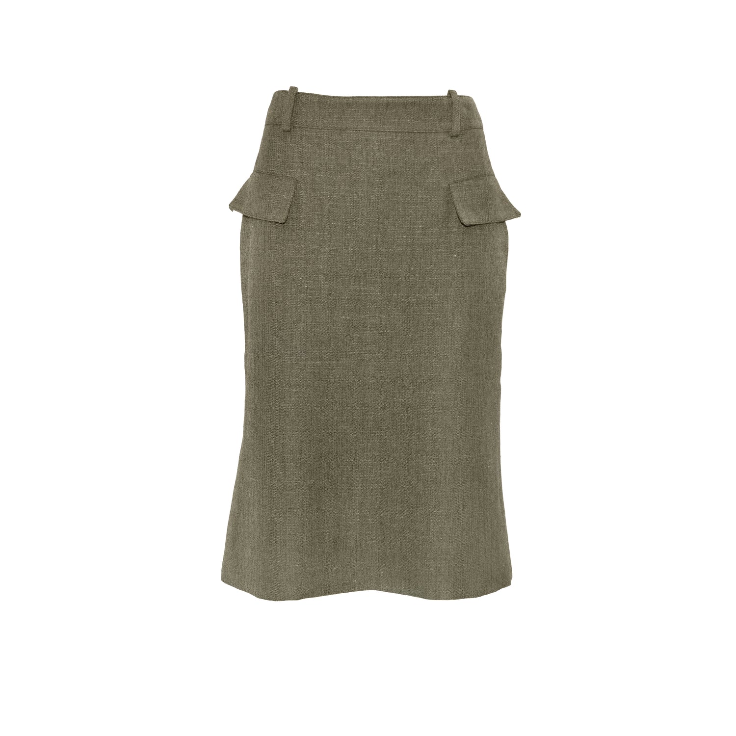Classic olive wool skirt with ribbed wool trim.