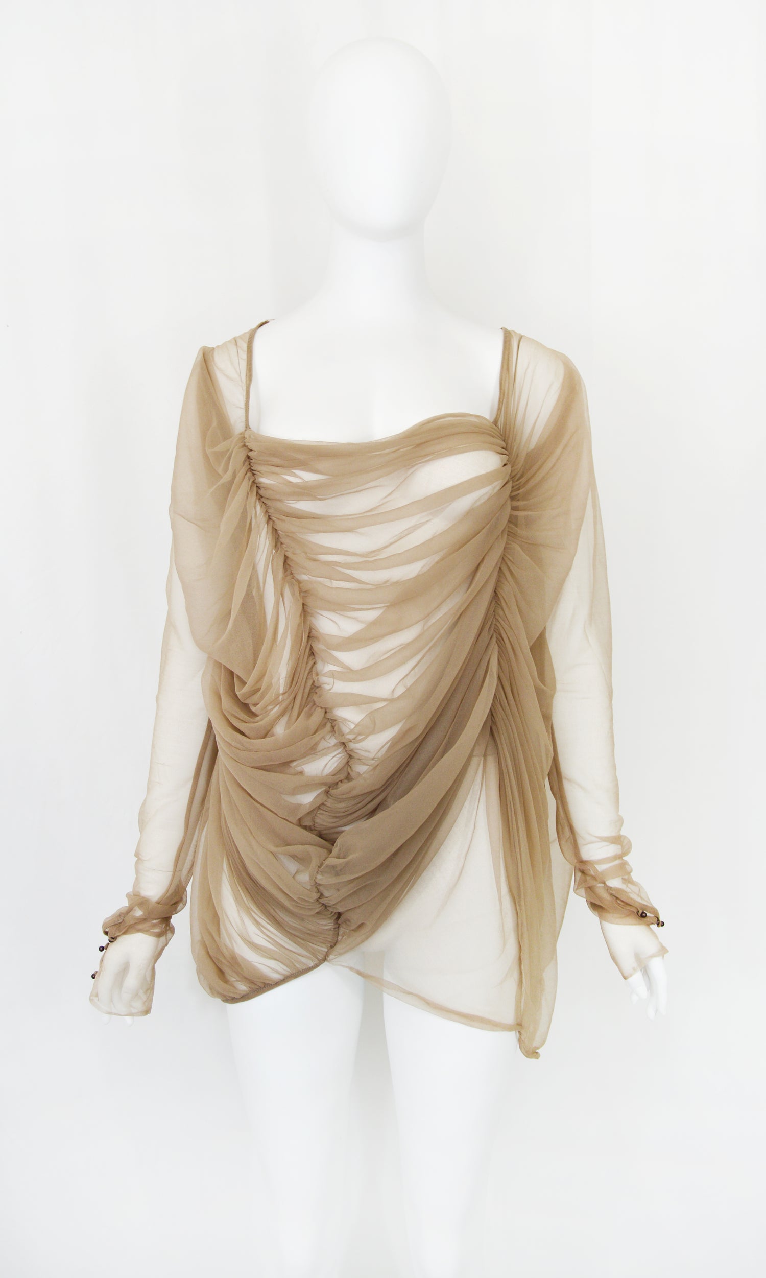 Gary Graham Sheer Blouse with Gatherered Bust