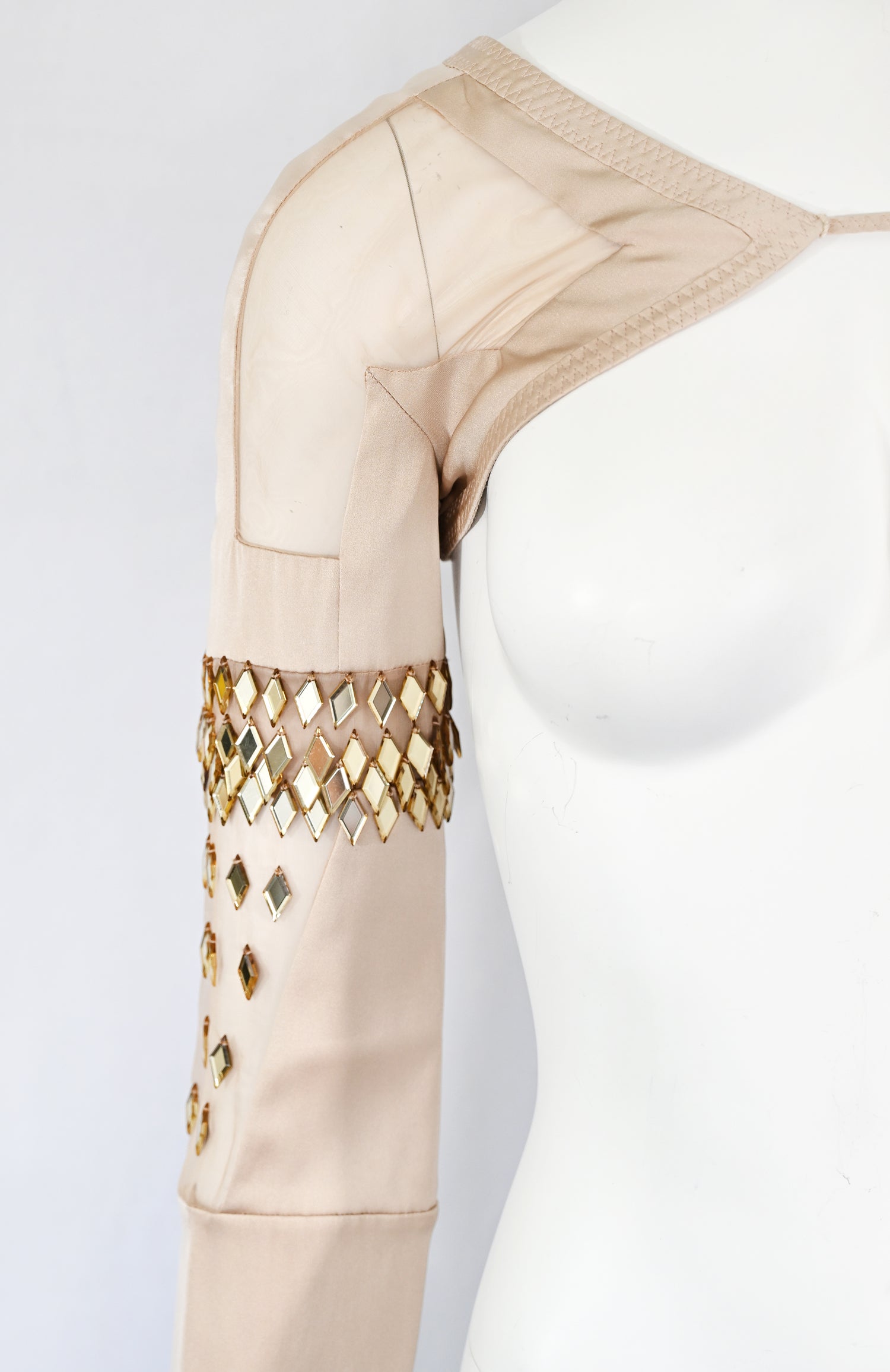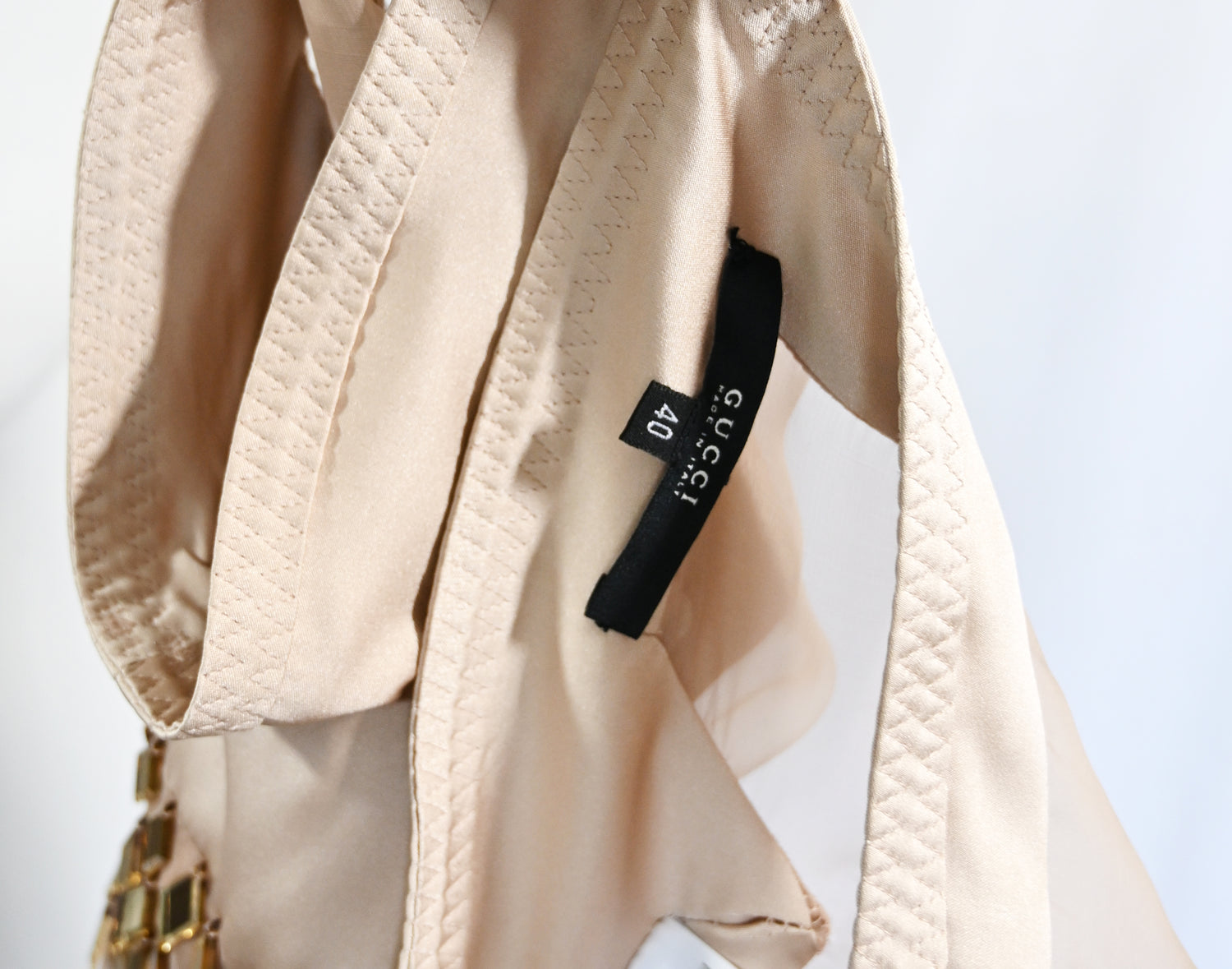 From the Gucci Spring 2005 collection and featured in the campaign. This striking piece is crafted from sumptuous silk with delicate chiffon inserts and features exquisite Swarovski crystal embellishments that catch light with every movement, finished with a single closure at the neckline A coveted archive piece that captures the essence Alessandra Facchinetti's debuts at Gucci. This exact garment was worn by Madonna's daughter, Lourdes Leon for The Travel Almanac, while we consigned it to Artifact.