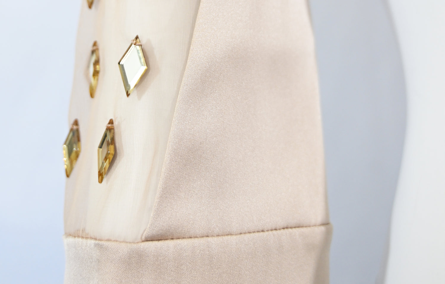 Condition: wear at hook and eye closure. minor imperfections at embellishment seams.