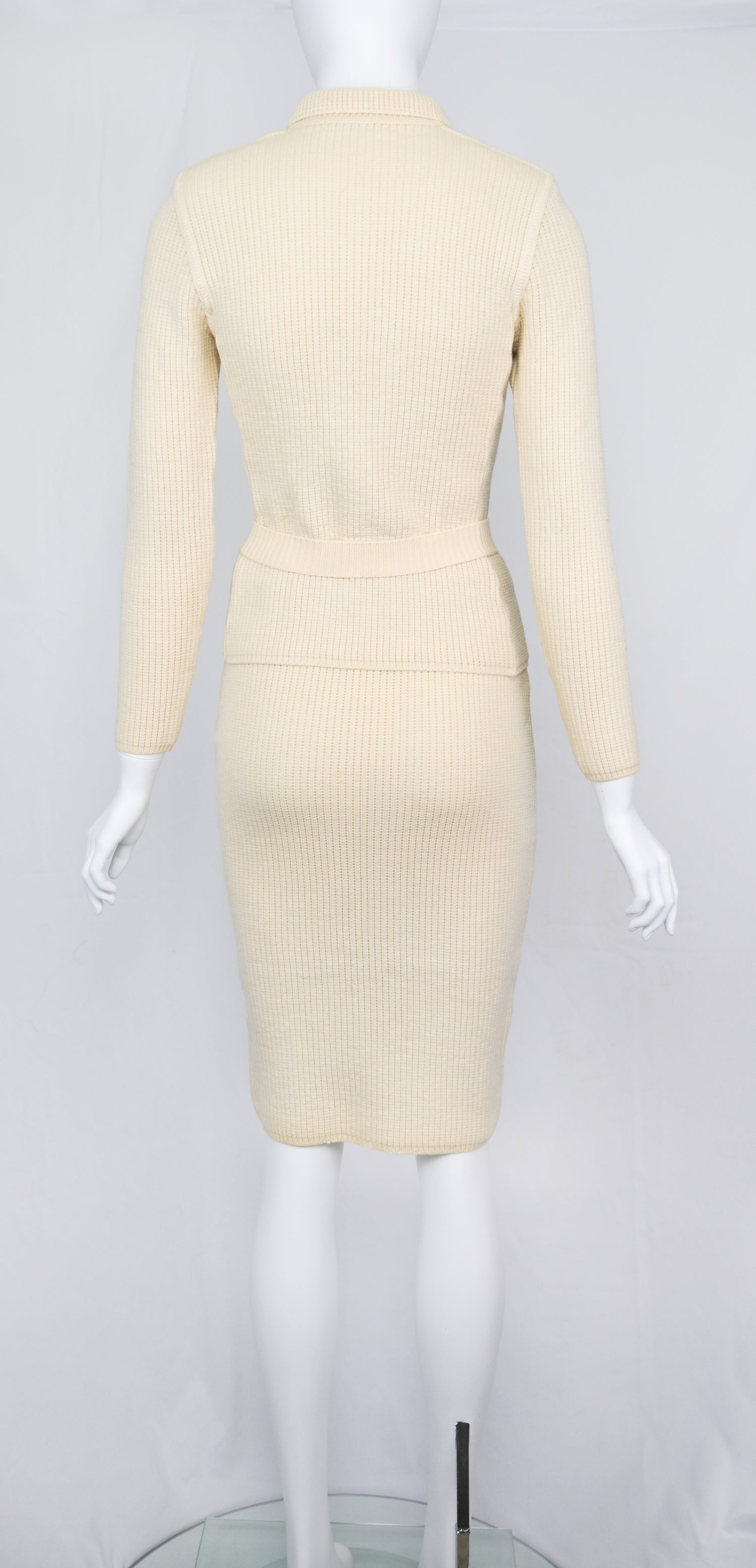 Condition: slight wear throughout. Interior elastic on skirt waistband is exposed. Slight scratches at hardware.