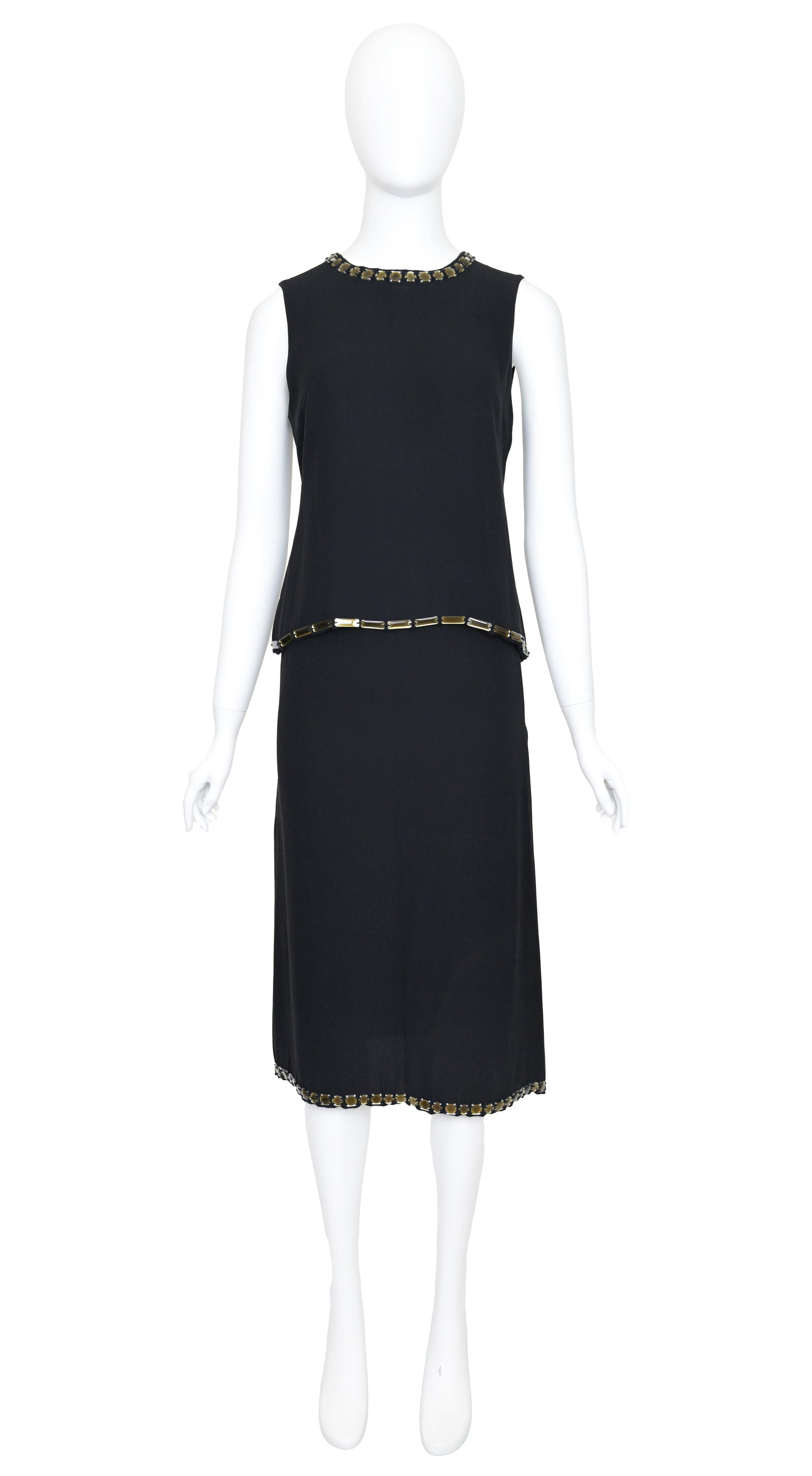 A beautifully embellished blouse and matching skirt from the beloved Prada 1999 Fall/Winter Collection. It showcases a delicate silk fabric gracefully complemented by a gem-embellished trim that adds subtle weight and structure. This exquisite detail enhances the garments' elegant drape, creating a refined silhouette that speaks to timeless sophistication and expert craftsmanship.
