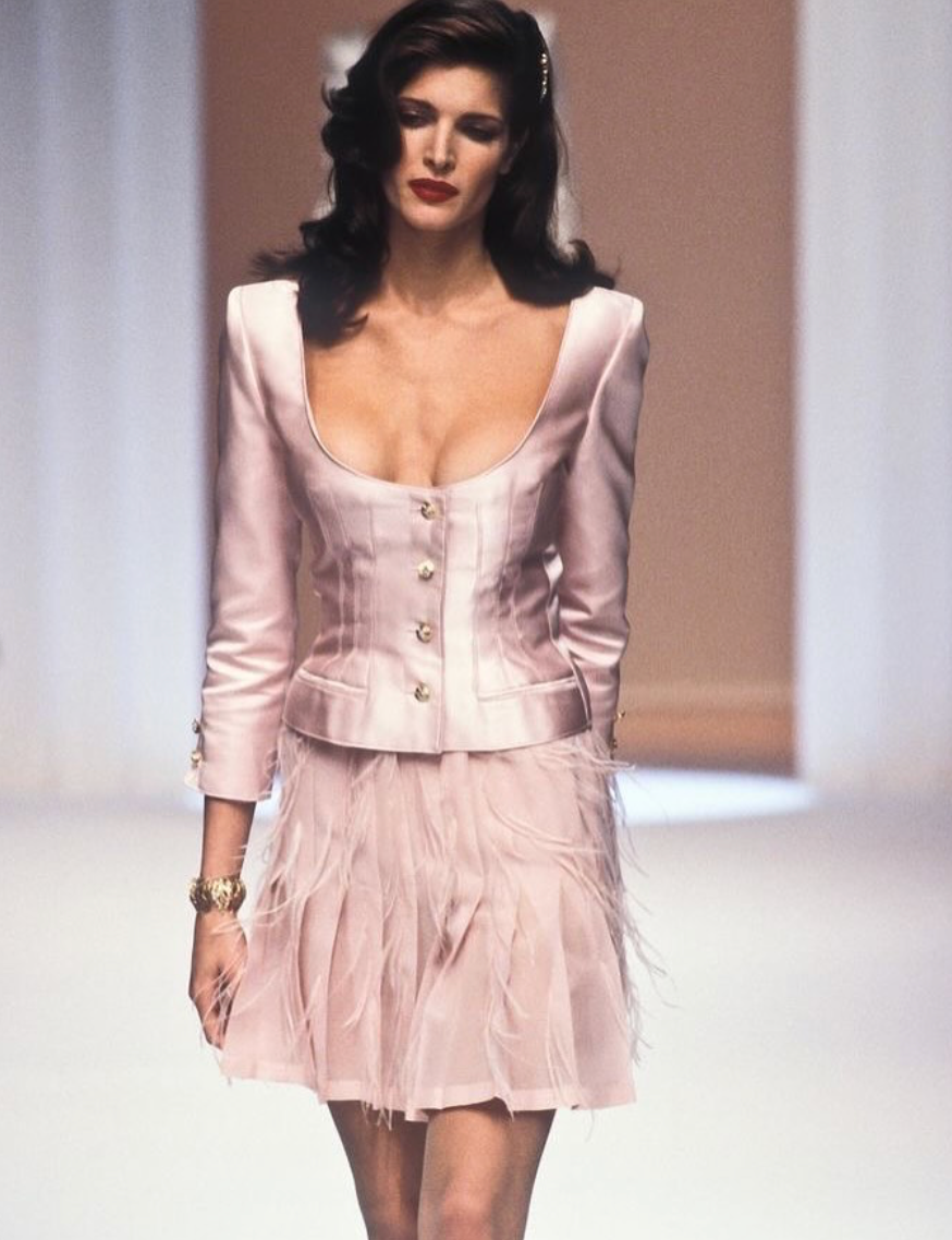 Expertly crafted from luxurious pink silk, this Valentino SS 1995 Pink Silk Blouse features a structured design with a deep neckline that exudes femininity and elegance. As seen on the runway, this blouse is a timeless addition to any wardrobe, making it a must-have for fashion enthusiasts and collectors.