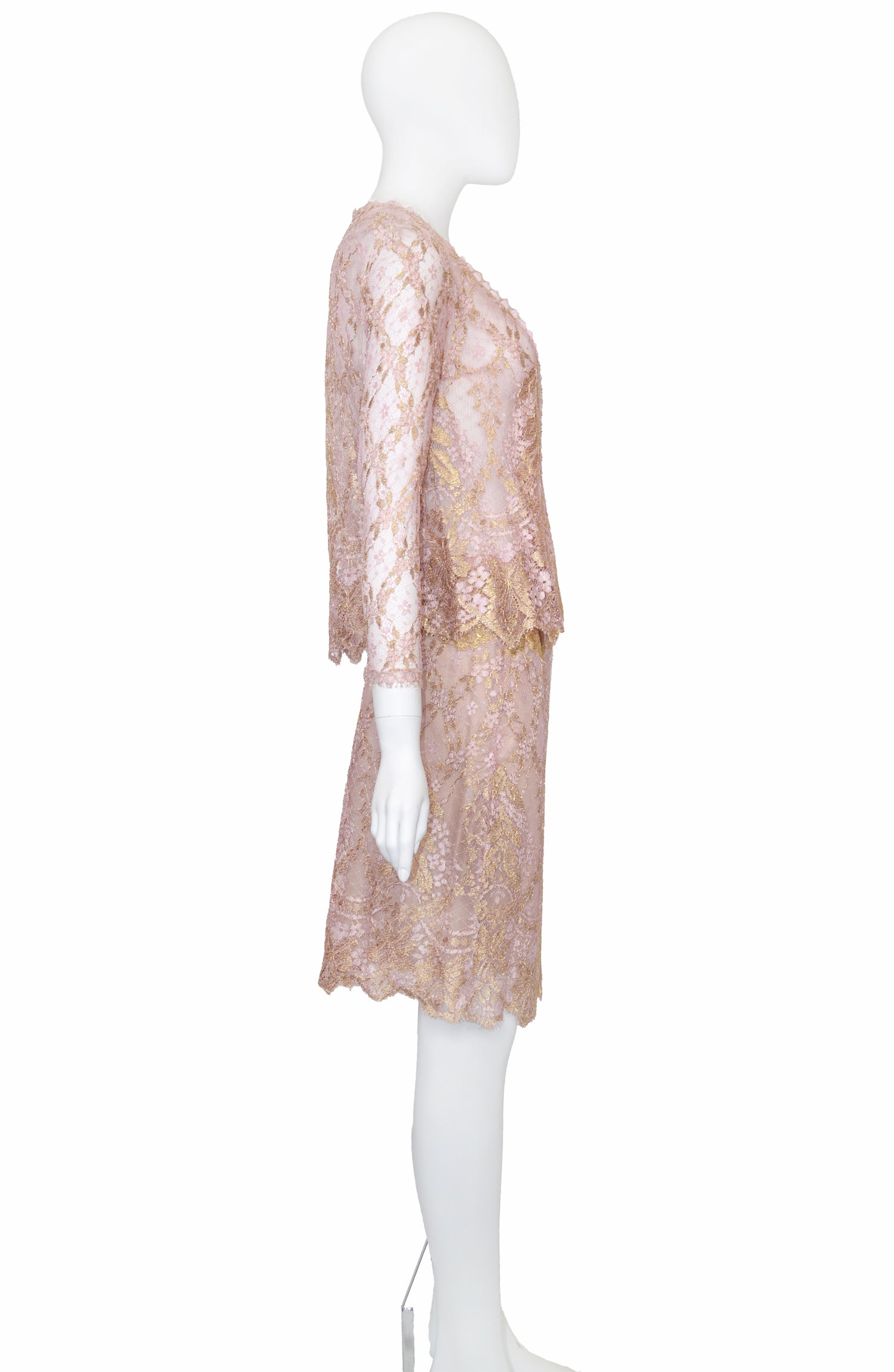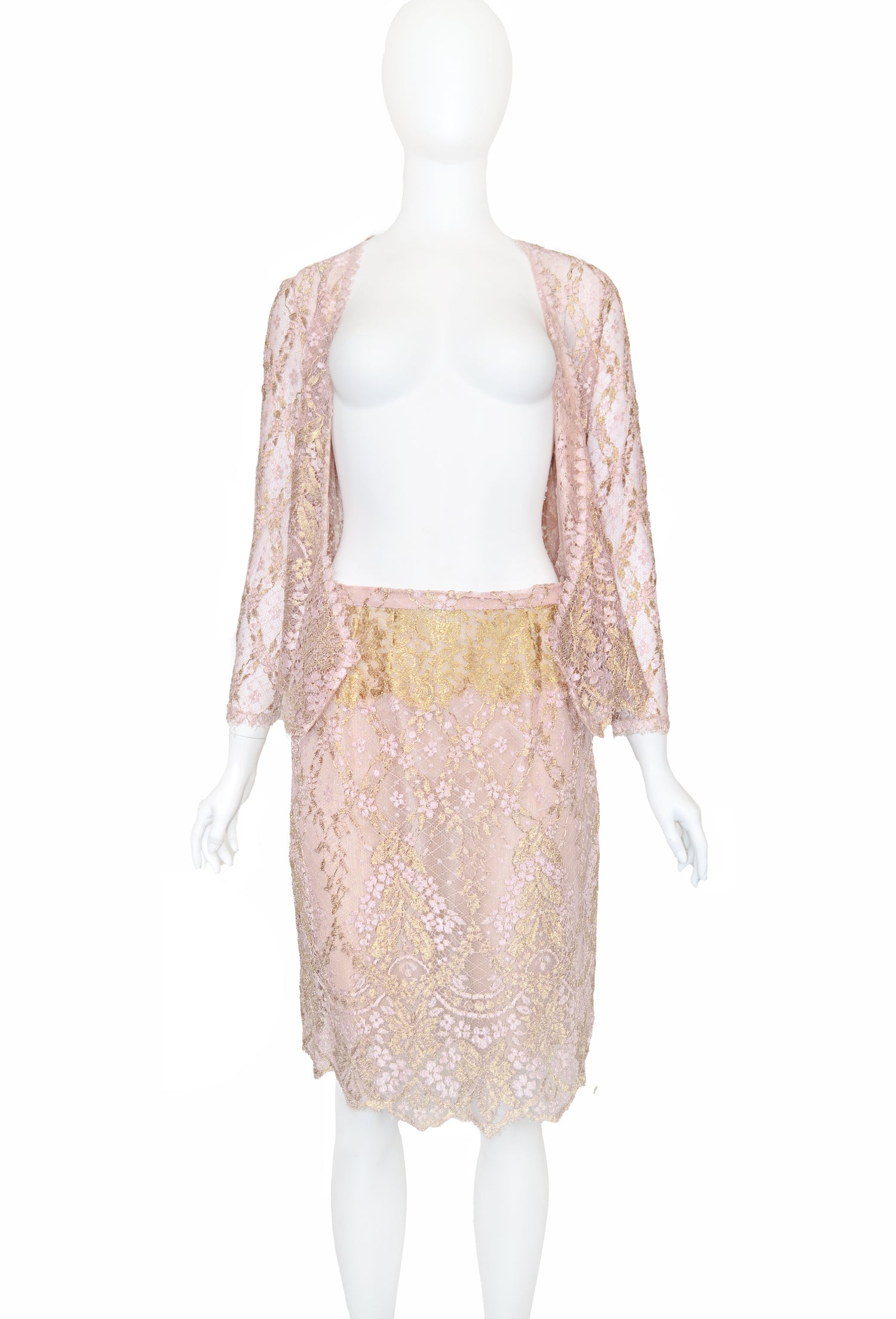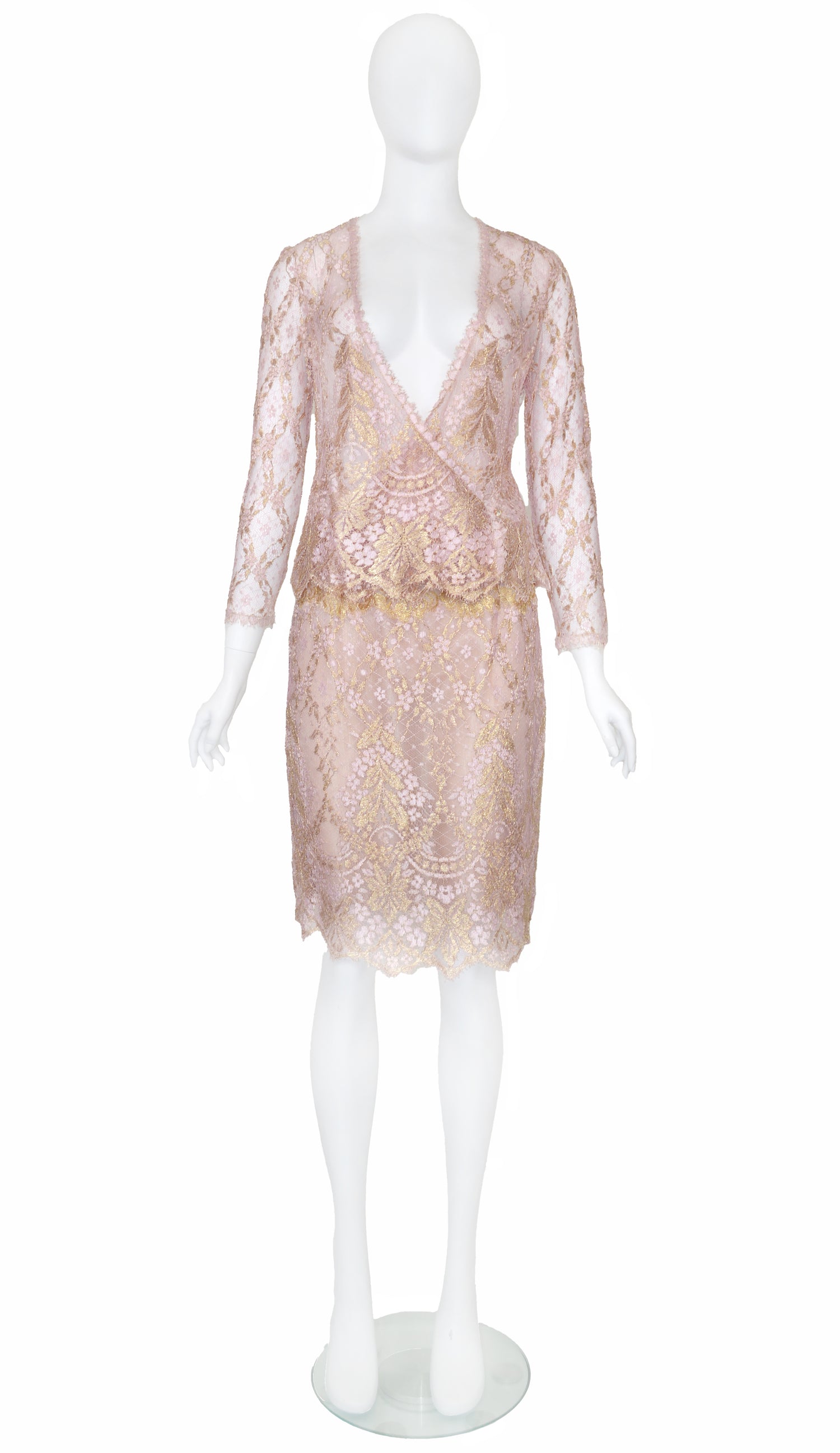 Valentino Boutique SS 1997 Metallic Lace Skirt Set, Pink