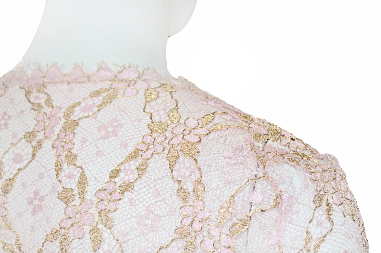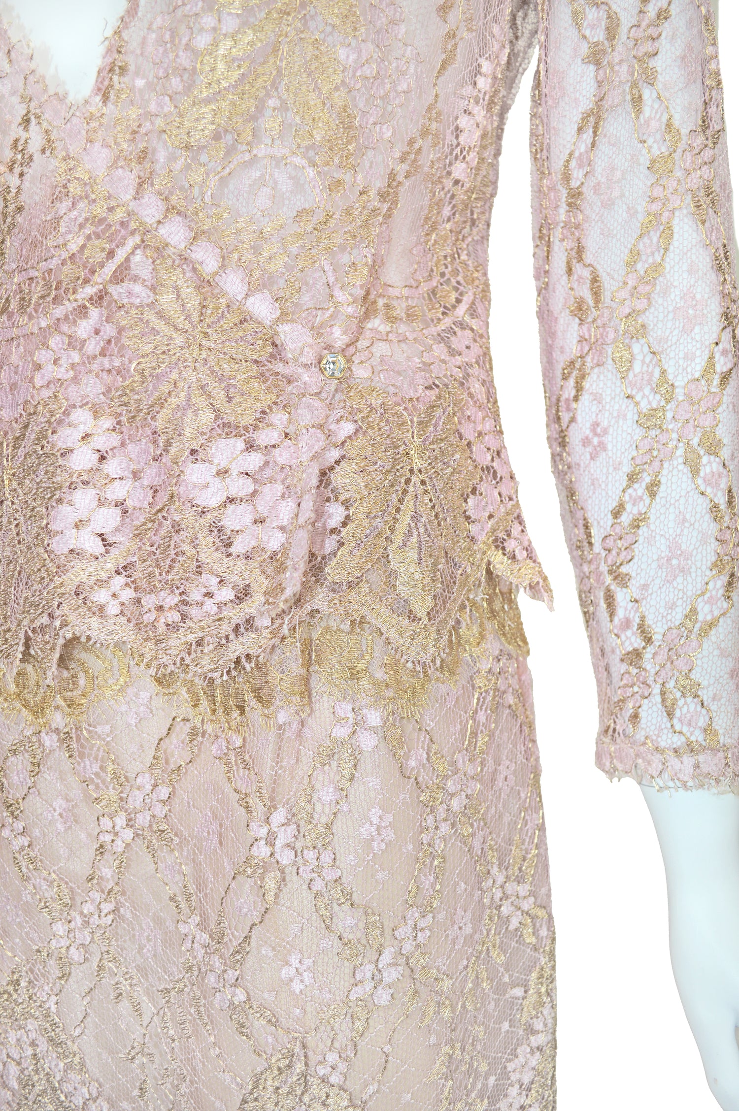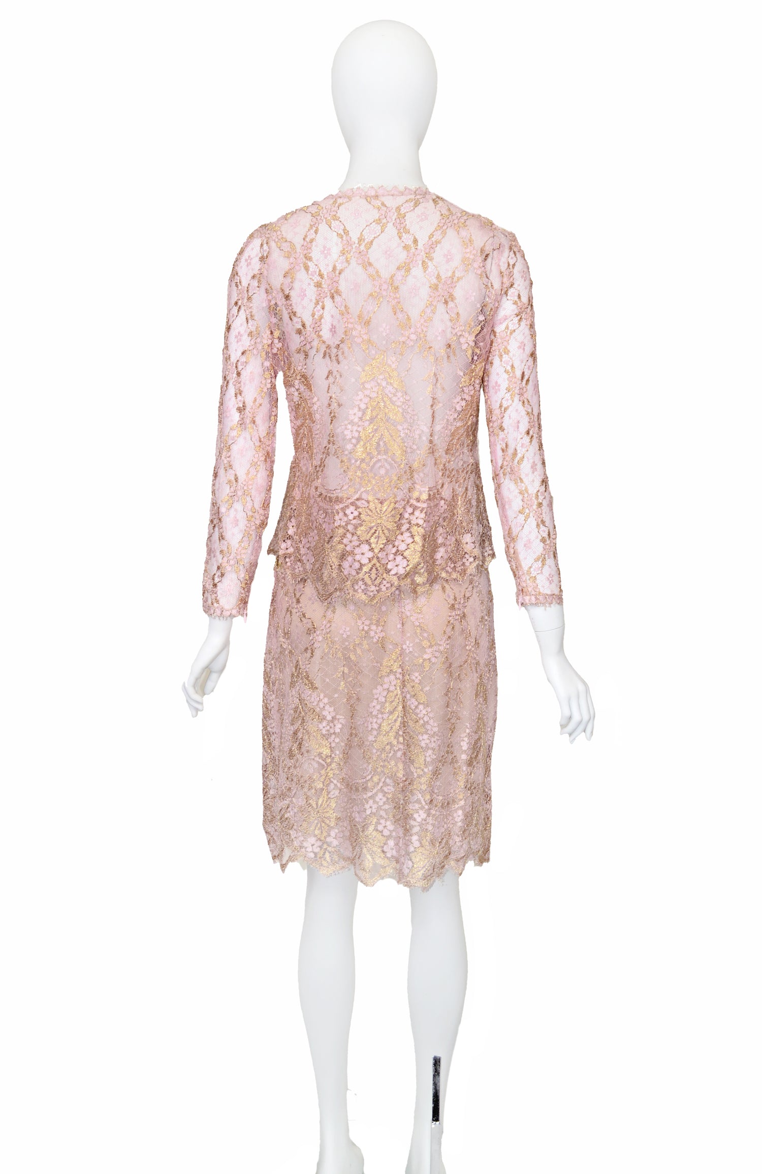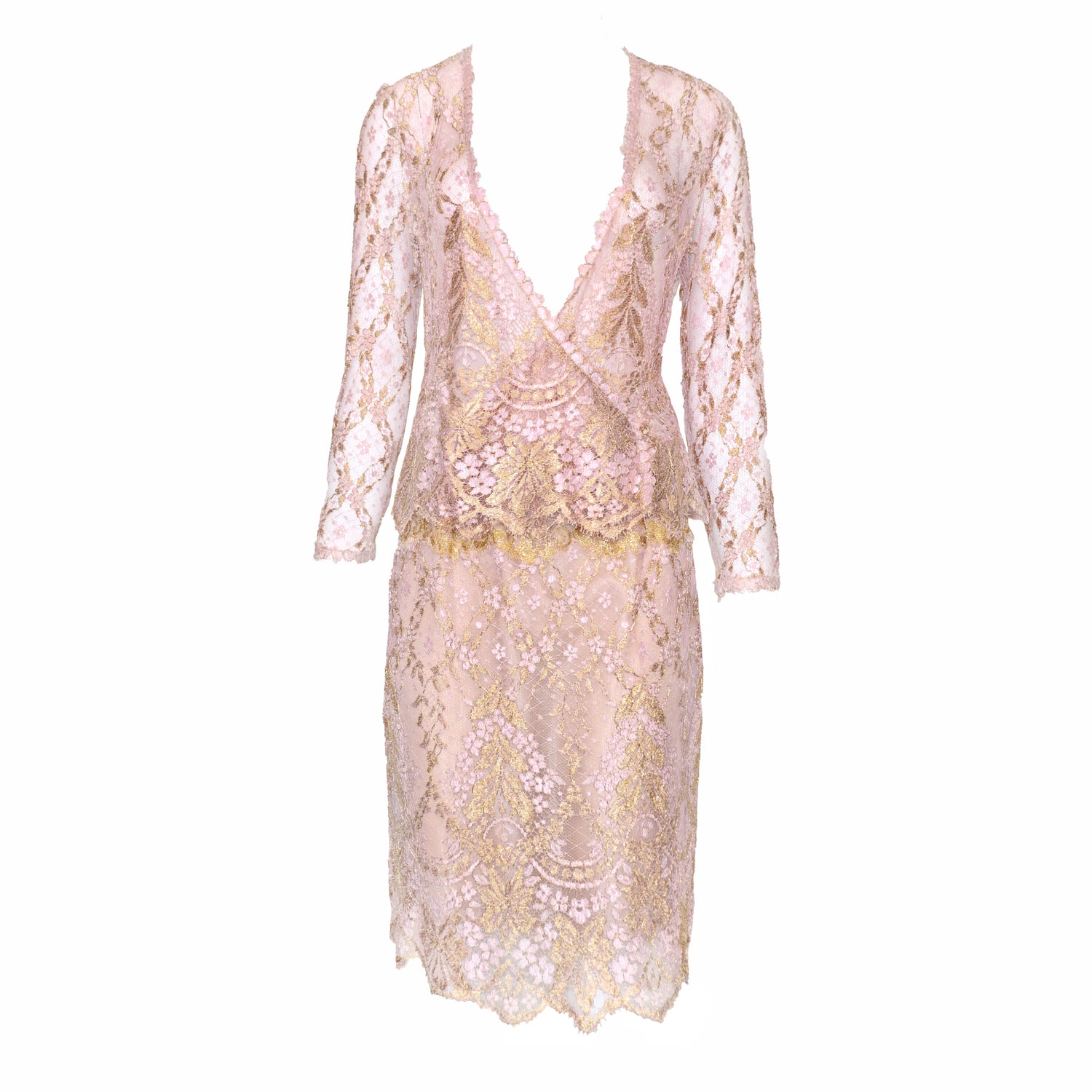 Valentino Boutique SS 1997 Metallic Lace Skirt Set, Pink