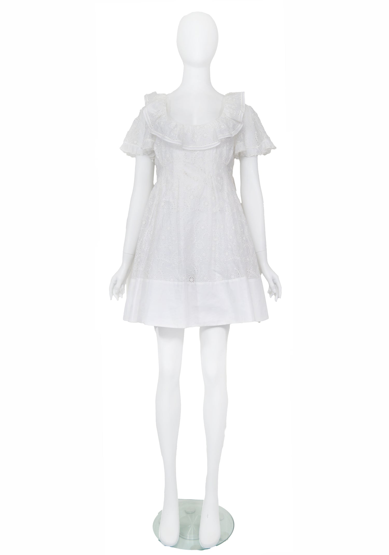 Valentino Resort 2019 Ruffled Broderie Eyelet Cotton Mini Dress